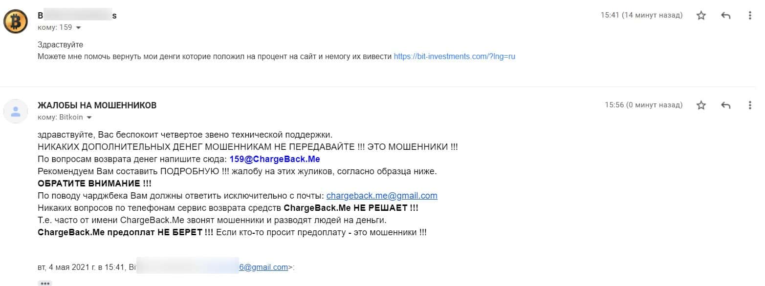 Жалоба на мошенническую организацию Bit Investments