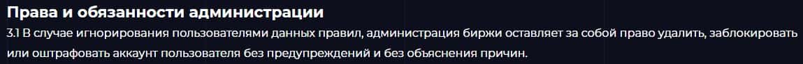 В пункте 3.1. договора указано, что Бит Инвестментс вправе удалить, заблокировать или оштрафовать аккаунт пользователя без предупреждений и без объяснения причин. Лохотрон.