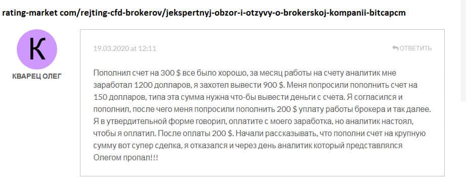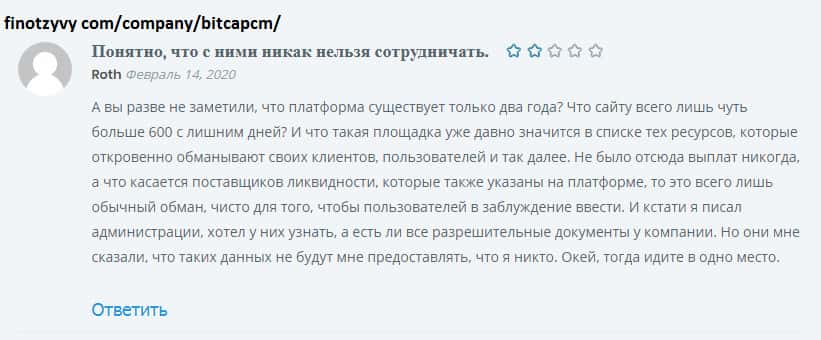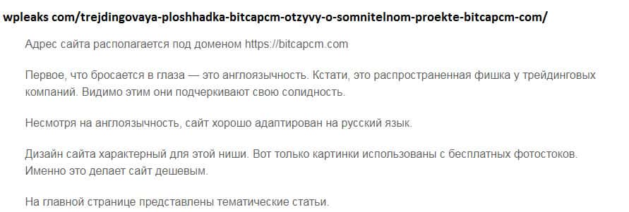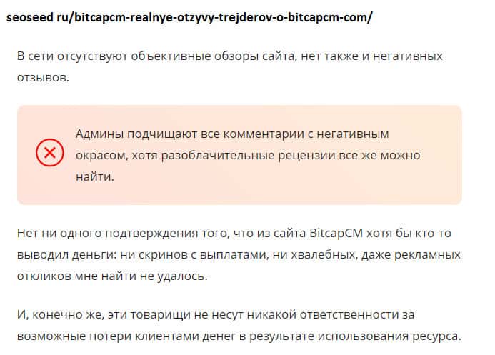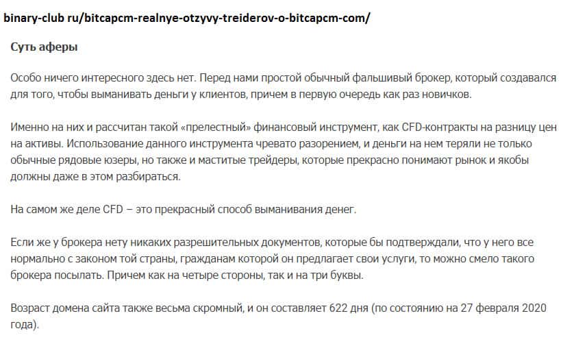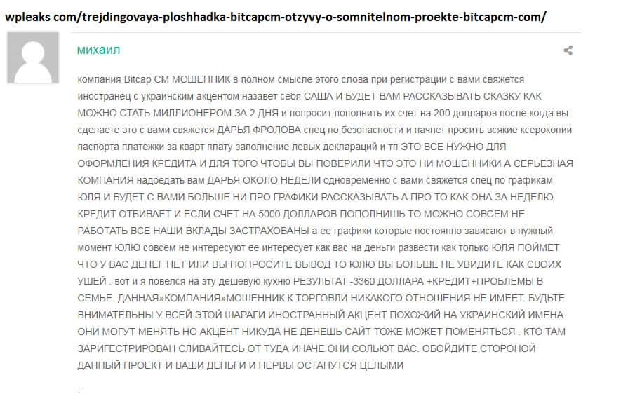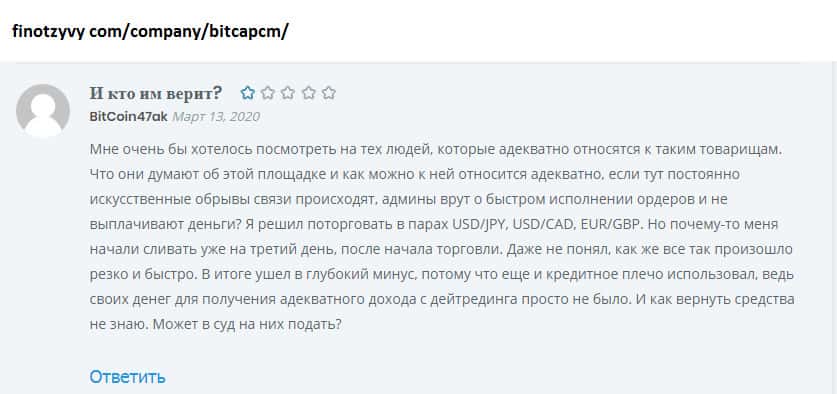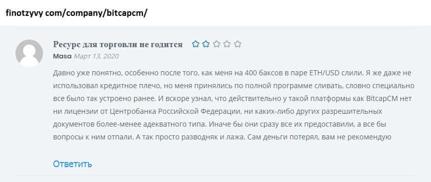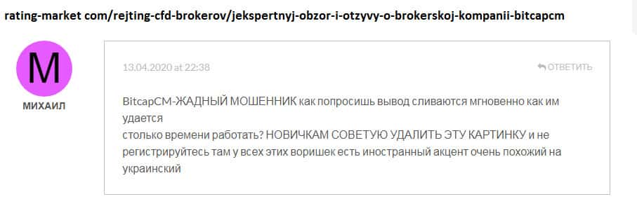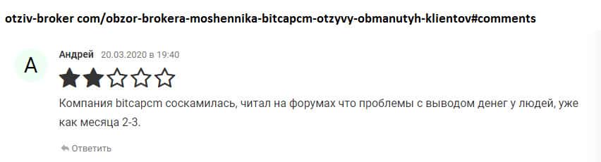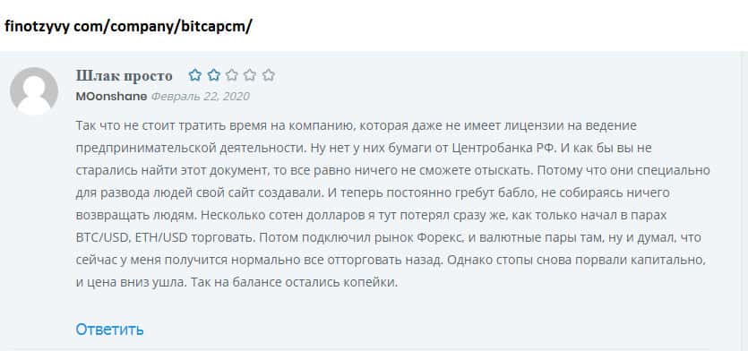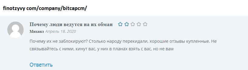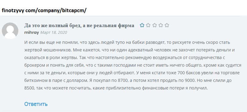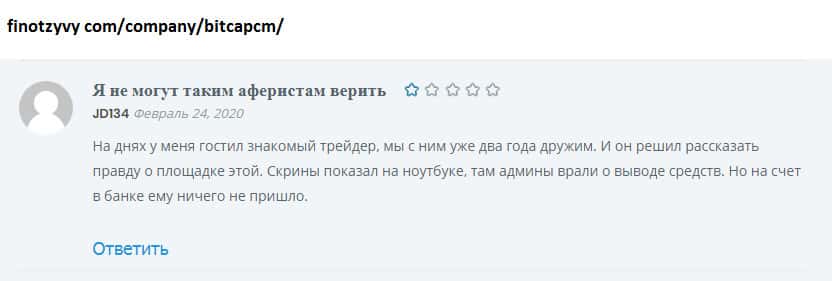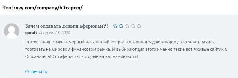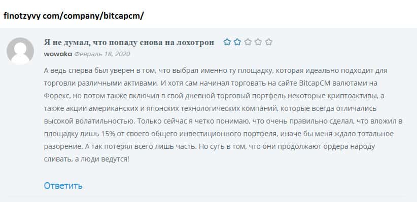 - Мутная контора BitcapCM имеет крайне негативную славу среди пользователей!