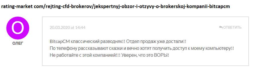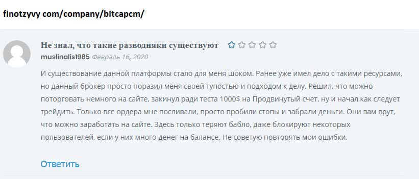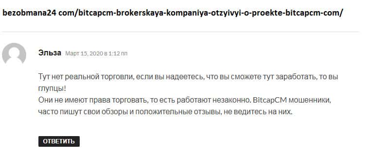 Псевдоброкер BitcapCM обманывает всех пользователей фейковыми комментариями о себе!