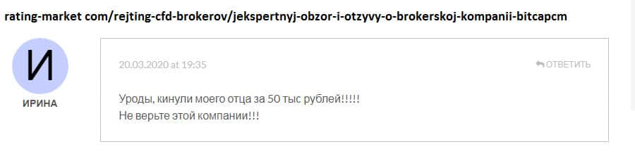 Мутная контора BitcapCM имеет крайне негативную славу среди пользователей!
