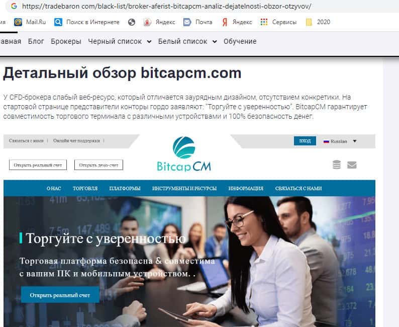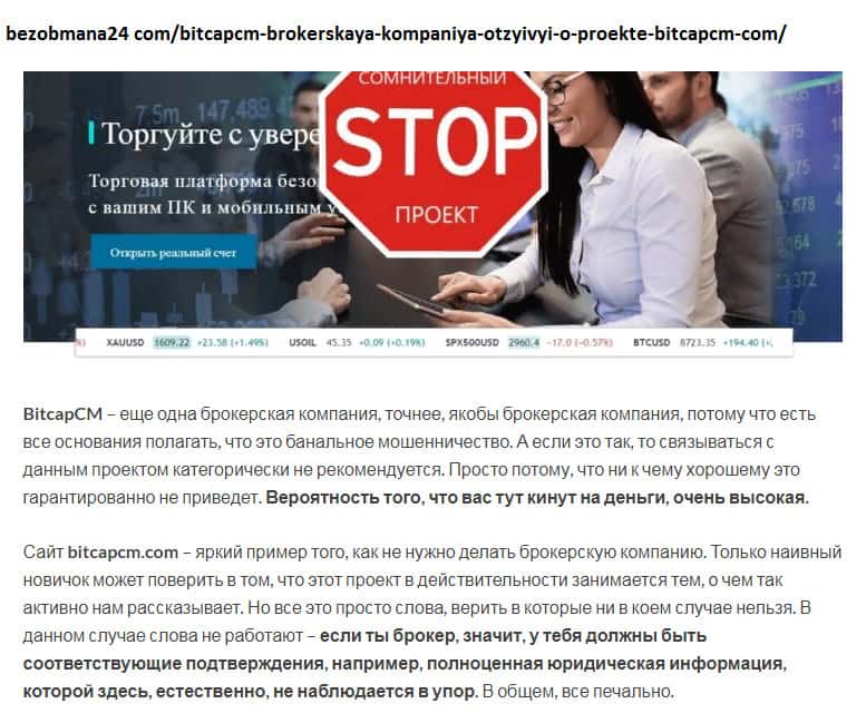 Детальный анализ официального сайта якобы брокера BitcapCM