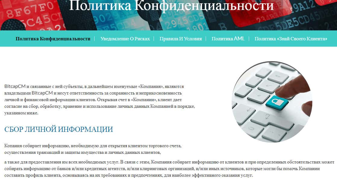 - Политика конфиденциальности лохокухни Бит Кап СМ абсолютно не защищает персональные данные клиентов!