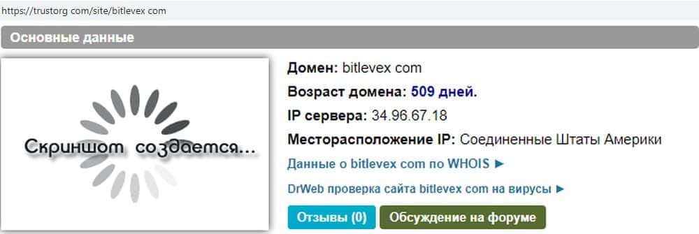 Портал трасторг ком показывает, что домену жуликов BitLevex почти два года, хотя самому скам-проекту еще нет и года. Домен, скорее всего, был перекуплен уже с историей и рейтингом.