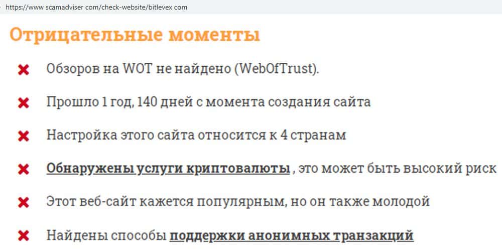 Ресурс скамэдвайзер ком предупреждает, что сайт аферы Бит Левекс может быть опасен: анонимность владельцев и транзакций, полное отсутствие отзывов не может не настораживать.