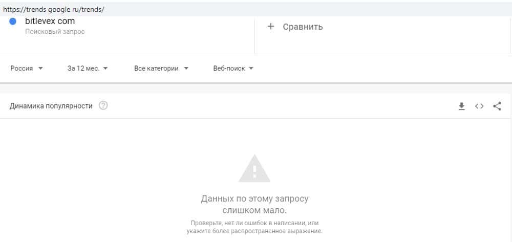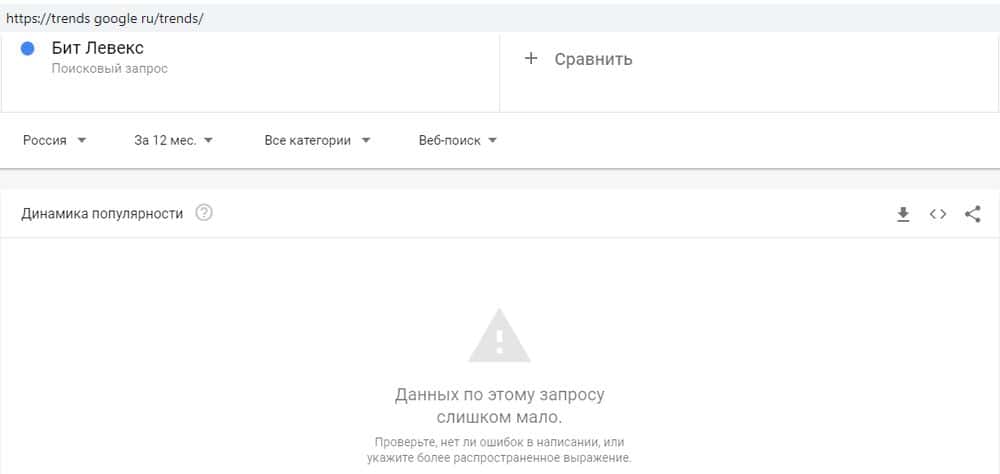 Анализ частоты запросов бренда разводил BitLevex в Гугл
