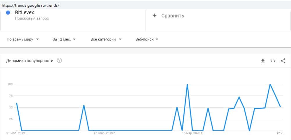 В поисковой системе Google спекулянты BitLevex еще менее популярны. Сервис трендз гугл ру показал, что за последний год по запросу "Бит Левекс" к движку вообще никто не обращался.