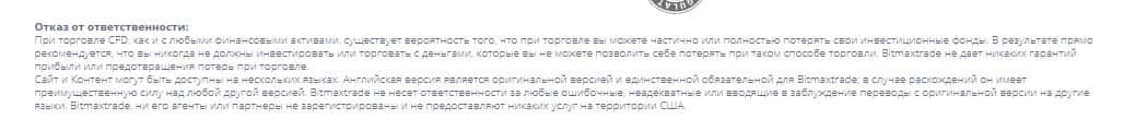 На официальном сайте аферистов BitmaxTrade так же указана информация о пользовательском соглашении, где прописано множество пунктов, которые необходимо внимательно читать. потому как компания имеет право закрыть счет на котором недостаточно средств.