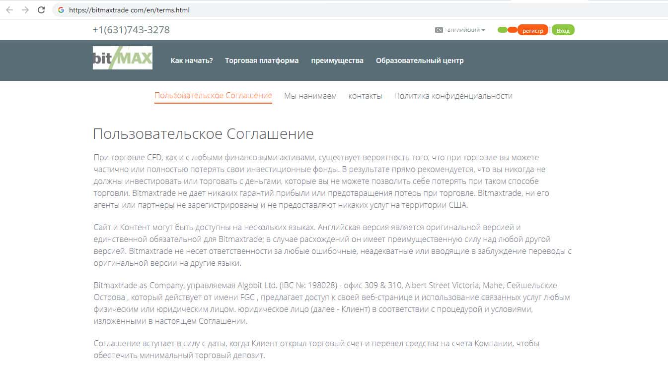 Пользовательское соглашение шулеров Бит Макс Трейд