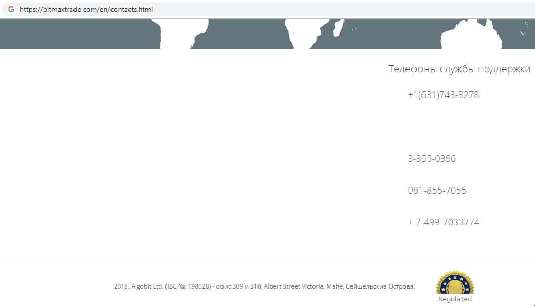 Из данных, которые представлены на официальном сайте конторы Бит Макс Трейд, можно выделить только адрес расположения главного офиса, номер телефона и форму для обратной связи. Вот собственно и вся информация. Ниже представлено все это в подробностях: