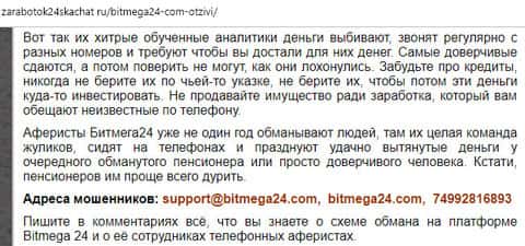 Подробный отзыв о мошеннических подвохах конторы BitMega24