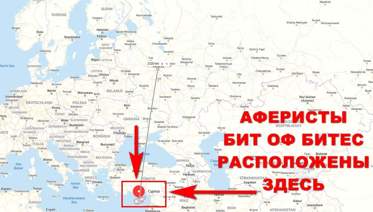 Далее представлена информация о местоположении псевдо-конторы Бит Оф Битес и зарегистрирована она на островном оффшоре Кипр, что не так и далеко от столицы России.