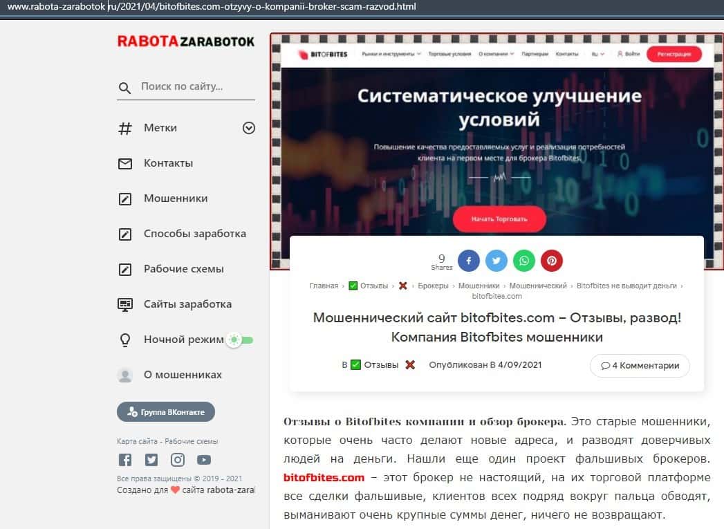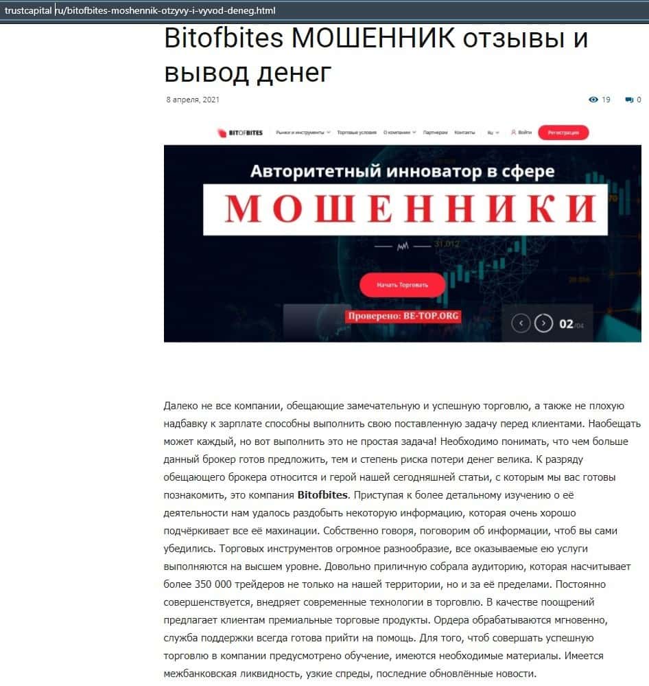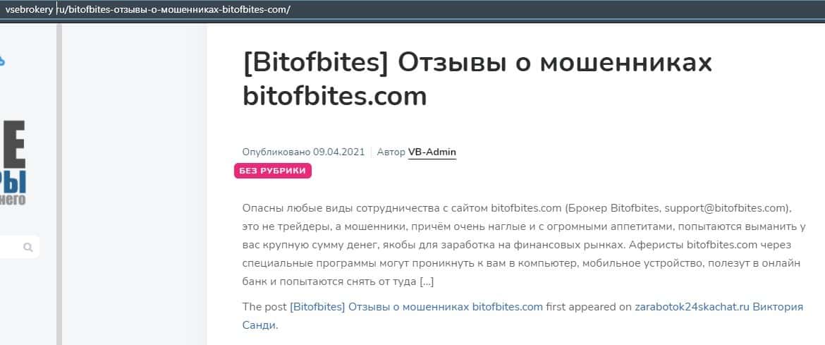 Далее представлена информация о мошеннической конторе Бит Оф Битес, где определенно указано, что это лохотрон, который создан для обворовывания клиентов на деньги.