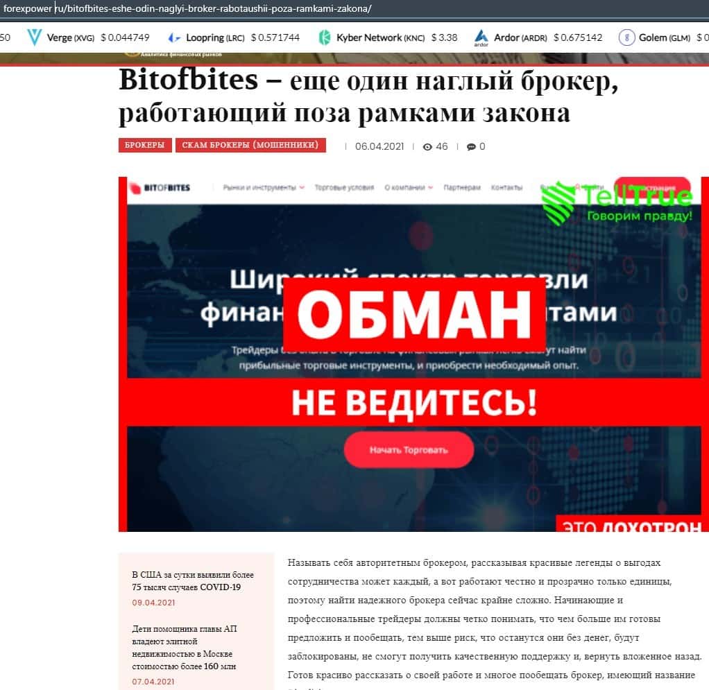 Из следующей стать вы можете также удостовериться, что контора Бит Оф Битес занимается мошенничеством, поэтому об авторитетном брокере здесь не может быть и речи.