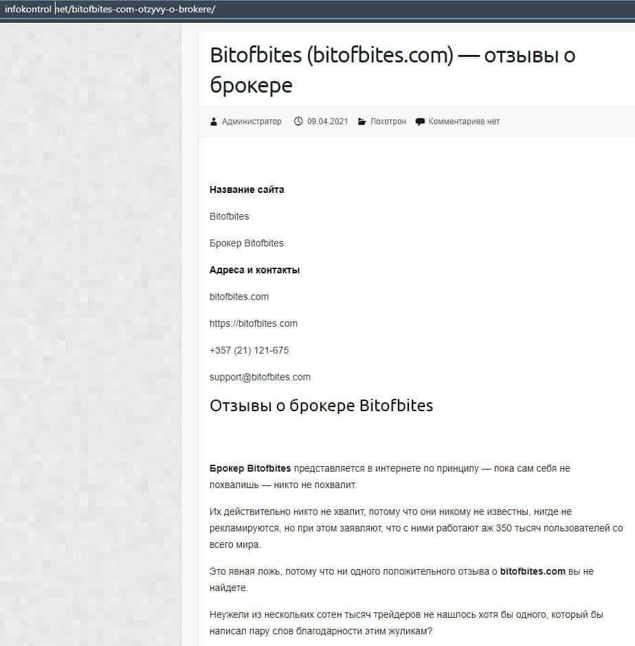 - Очередная жалоба на псевдо-брокерскую организацию Bitofbites