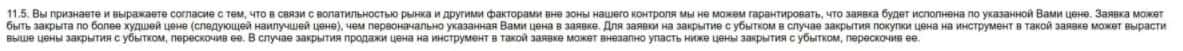 Далее представлена информация касательно того, что заявка клиента может быть закрыта по наихудшей цене, поэтому псевдо-контора Бит Оф Битес не будет нести ответственность.