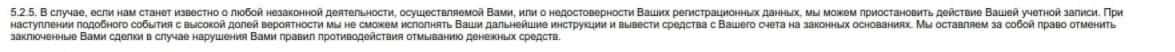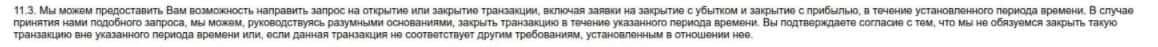 Еще одно подтверждение того, что лохотрон Бит Оф Битес имеет право закрыть сделку клиента в любой момент и разорвать договор, если посчитает, что клиент занимается мошенничеством.