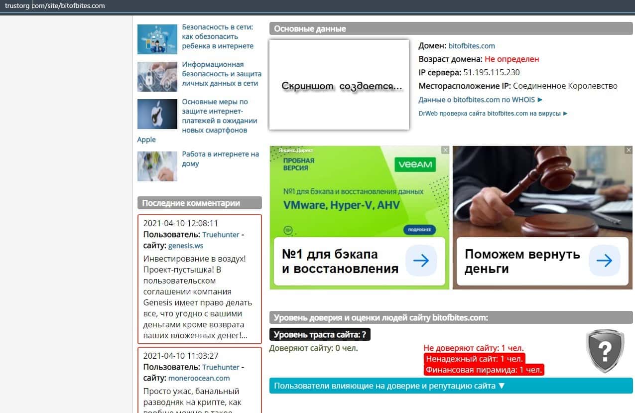Из следующего материала становится известно, что контора BitOfBites попала в черный список ресурса, который собирает информацию о подобных сомнительных проектах в сети.