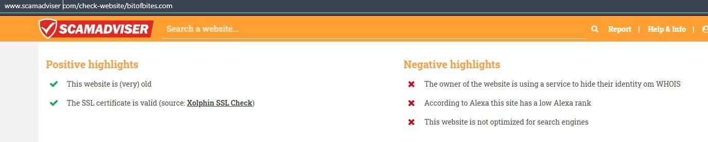 Данные о сайте bitofbites com от скамадвайзер ком