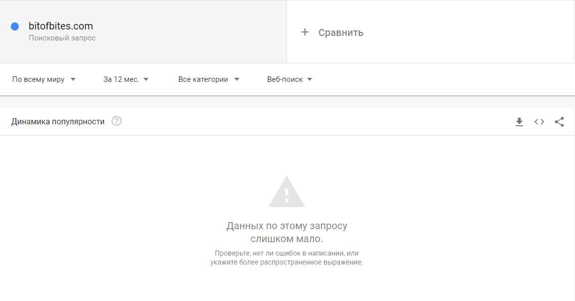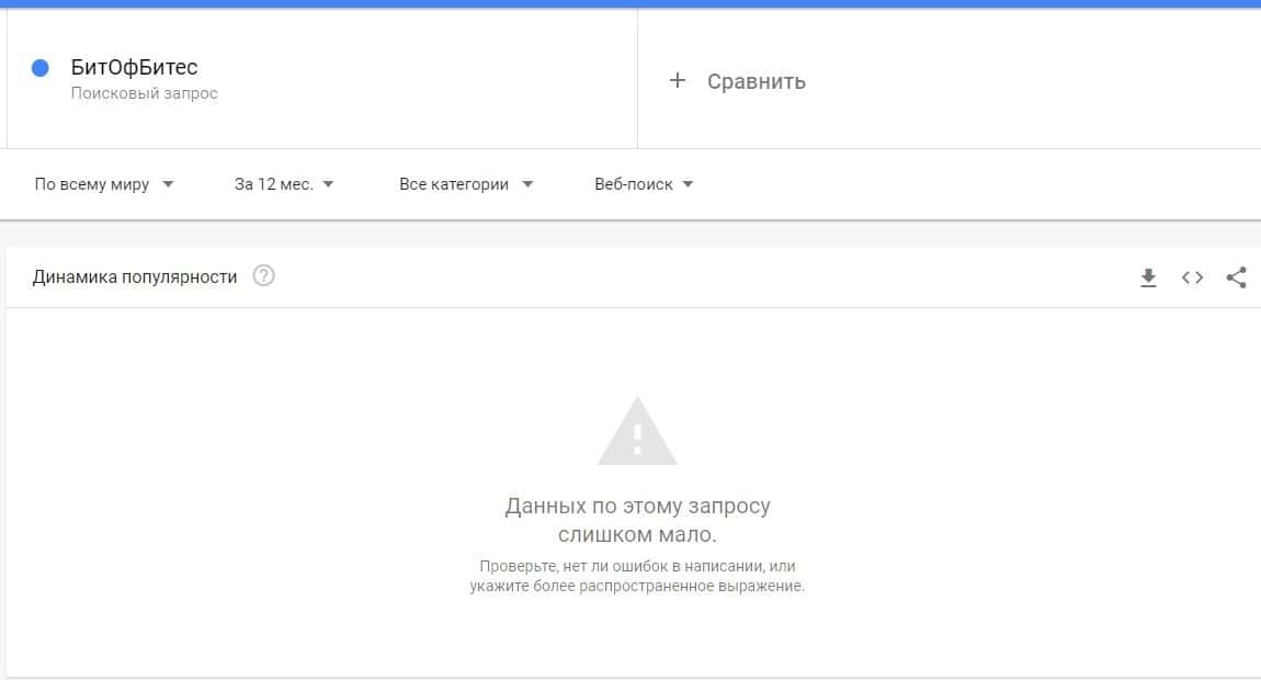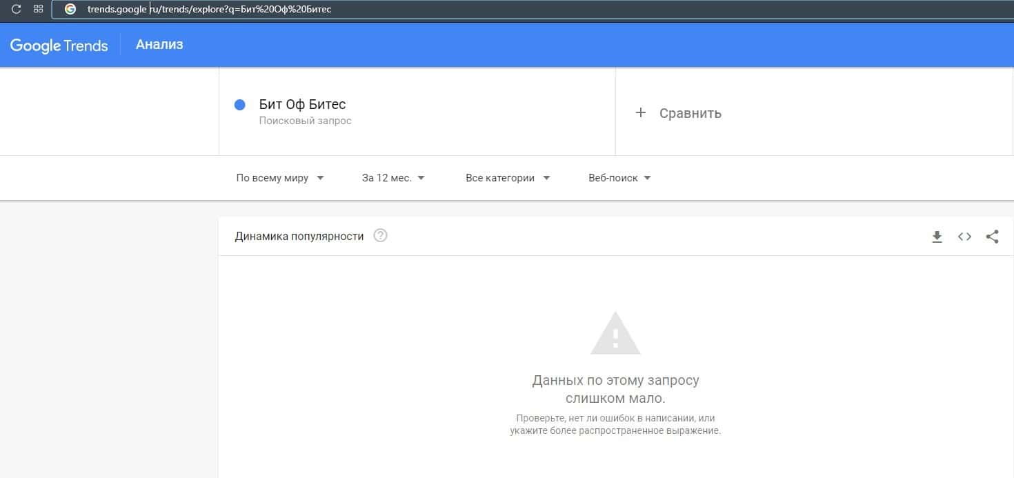 Если рассмотреть запрос бренда "Бит Оф Битес" в Гугл Трендс, то здесь система не смогла определить количество запросов из-за их малого количества.