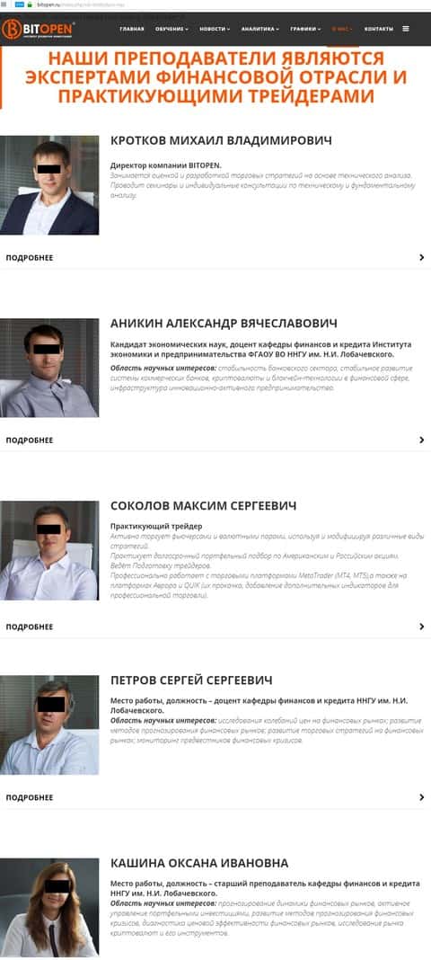 Мошенническая контора Бит Опен, которая занимается посредничеством с форекс-кухней FXOpen, решила не скрывать лица своих руководителей. Они думают, что просто работают по закону, как консалтинговое агентство, а в случае мошенничества с них никакого спроса. Но мы то знаем, что контора посредник, а посредник как стукач пойдет по всем статьям, что и сам вор. Так что вот люди, которых потом нужно искать.