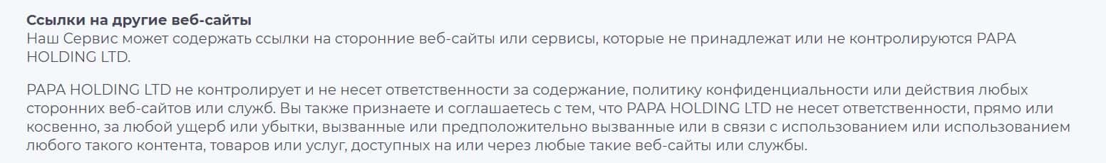 Шарага BitPapa на своем официальном сайте размещает ссылки, за содержание которых скам-организация ответственности не несет.