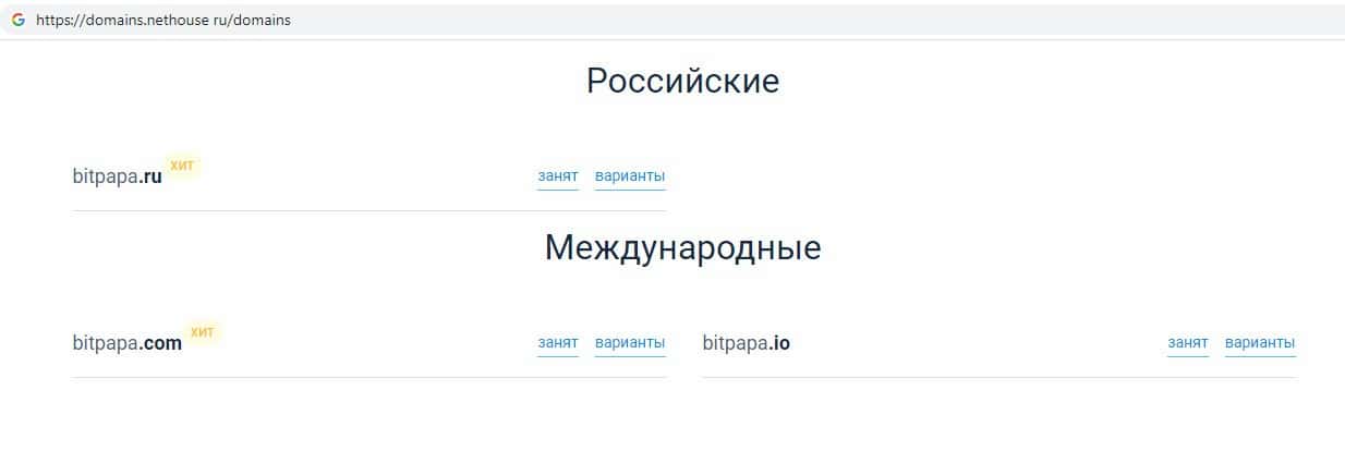 На веб-ресурсе domains nethouse ru была произведена проверка домена компании BitPapa, которая показала то, что данный интернет-лохотрон находится также на сайтах:
