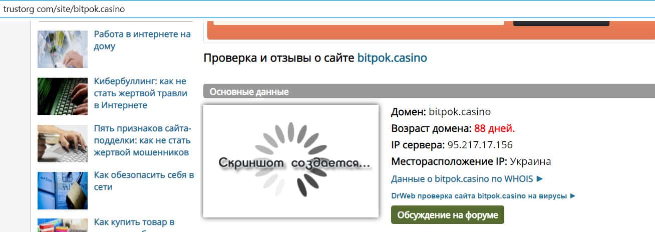 Возраст доменного имени сайта bitpok casino составляет 88 дней. Контора создана совсем недавно, поэтому доверять ей не имеет смысла.