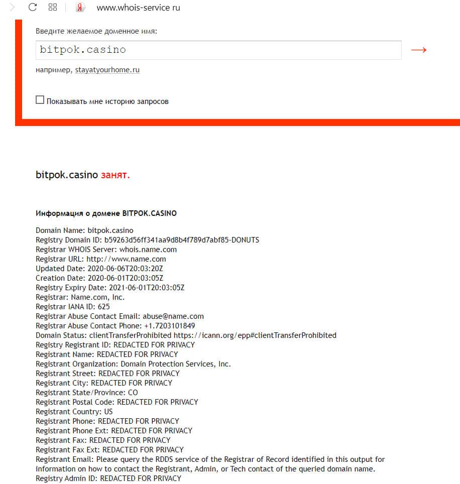 - Кому принадлежит доменное имя сайта bitpok casino?