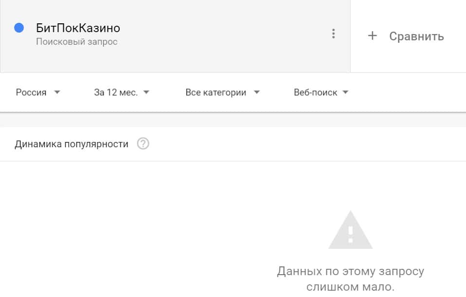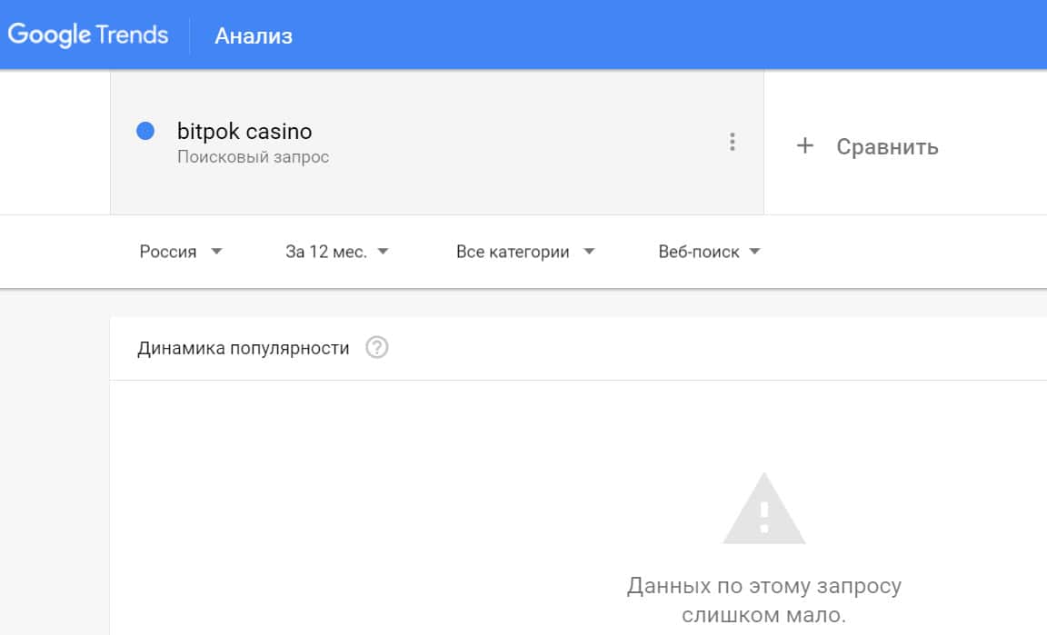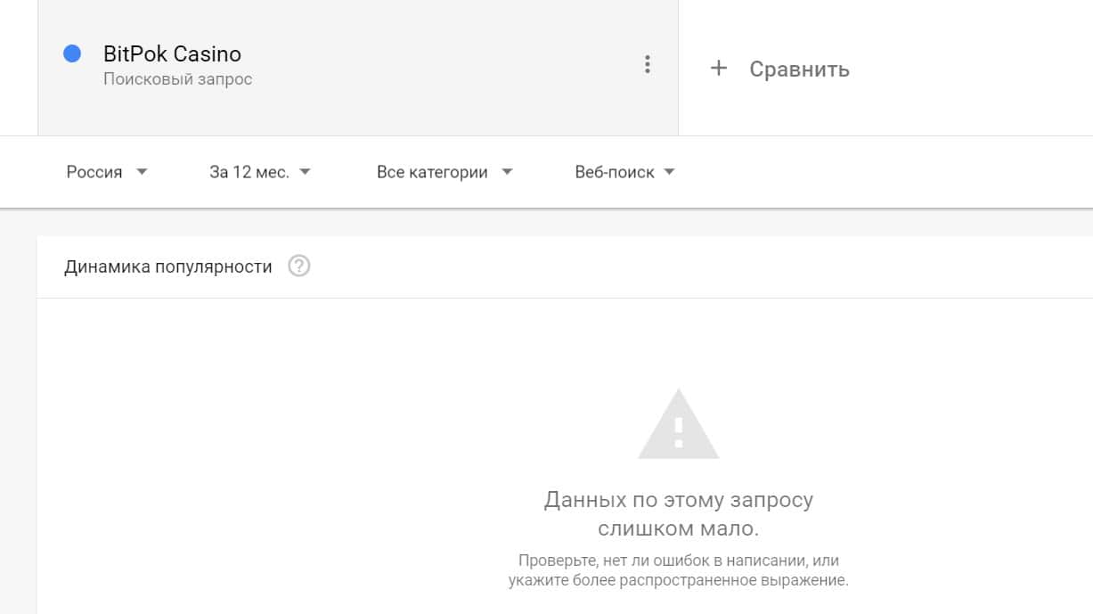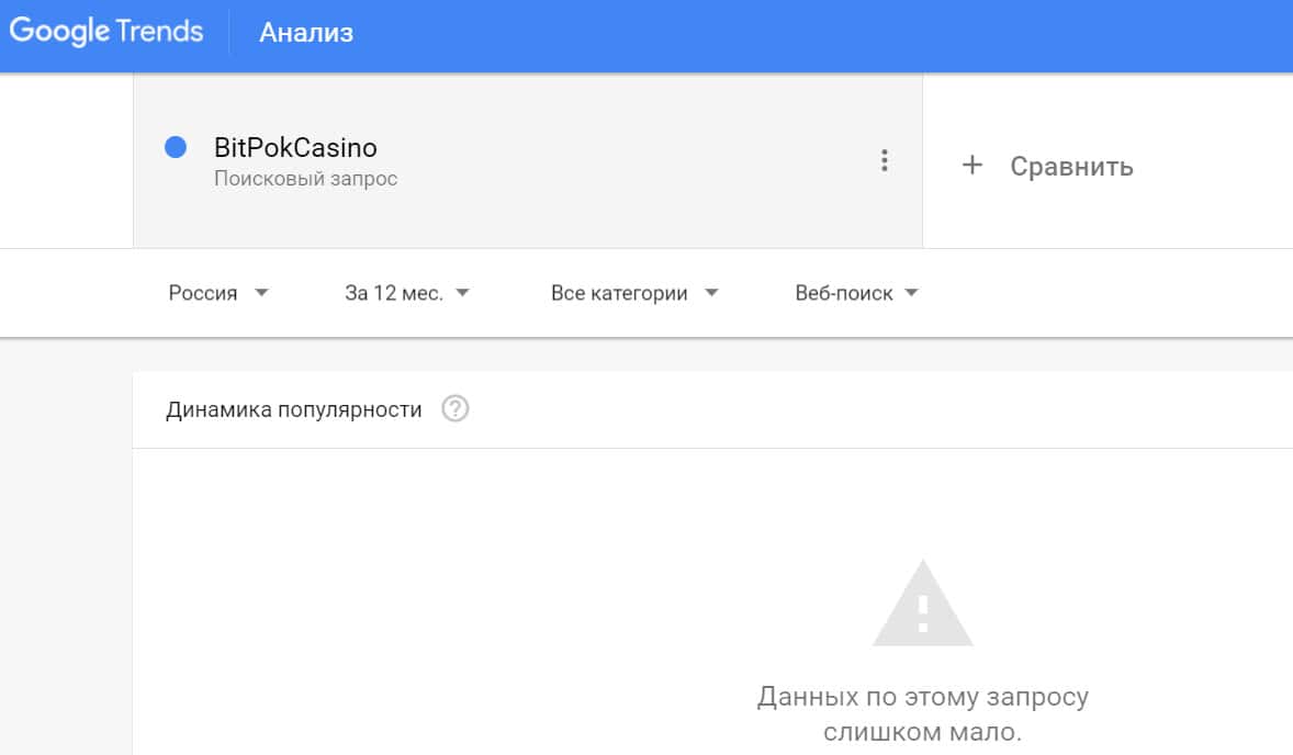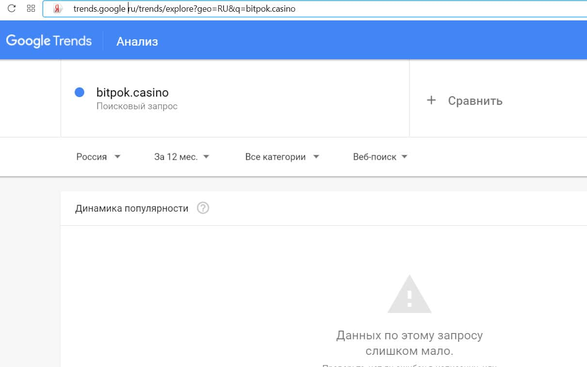 Запросы от пользователей по доменному имени "bitpok casino" в сервисе Гугл Тренд почти не поступали.