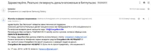 Жалоба на мошенническую форекс-контору БитПульсес - пострадавший клиент пытается вернуть утраченное