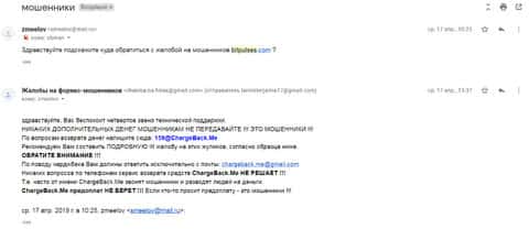 Человек написал нам письмо с просьбой разъяснить ему куда обратиться с жалобой на мошенников Бит Пульсес, так как те его кинули на не малую сумму денег. Знакомые посоветовали ему обратиться в организацию ChargeBack.Me где увеличатся шансы вернуть украденное.