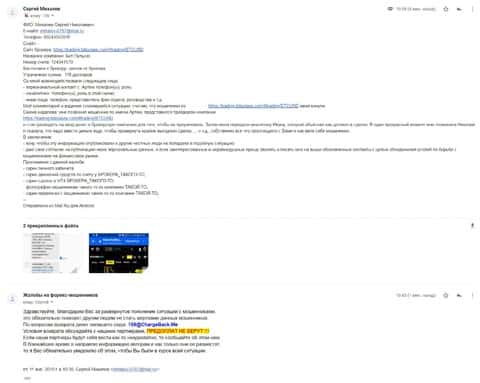 Еще одна жалоба пришла в организацию ChargeBack.Me где человек просит о помощи в возврате средств огромной суммы. Клиент поверил аналитику на слово и тот, используя психологическое влияние выманил постепенно все деньги Теперь вся надежда только на службу по возврату средств из лохотронов.