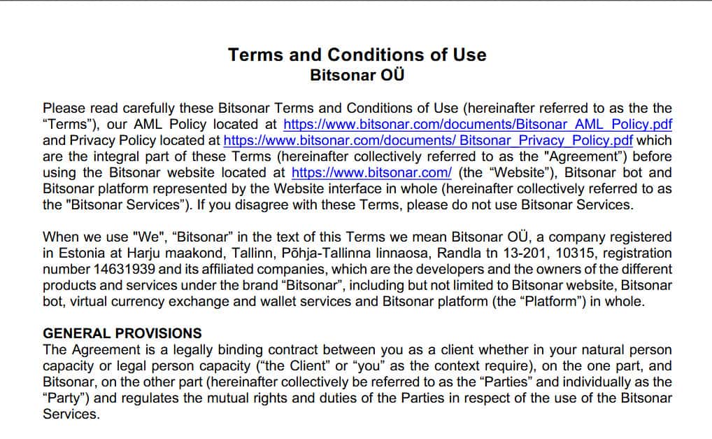 - Описание клиентского соглашения Бит Сонар