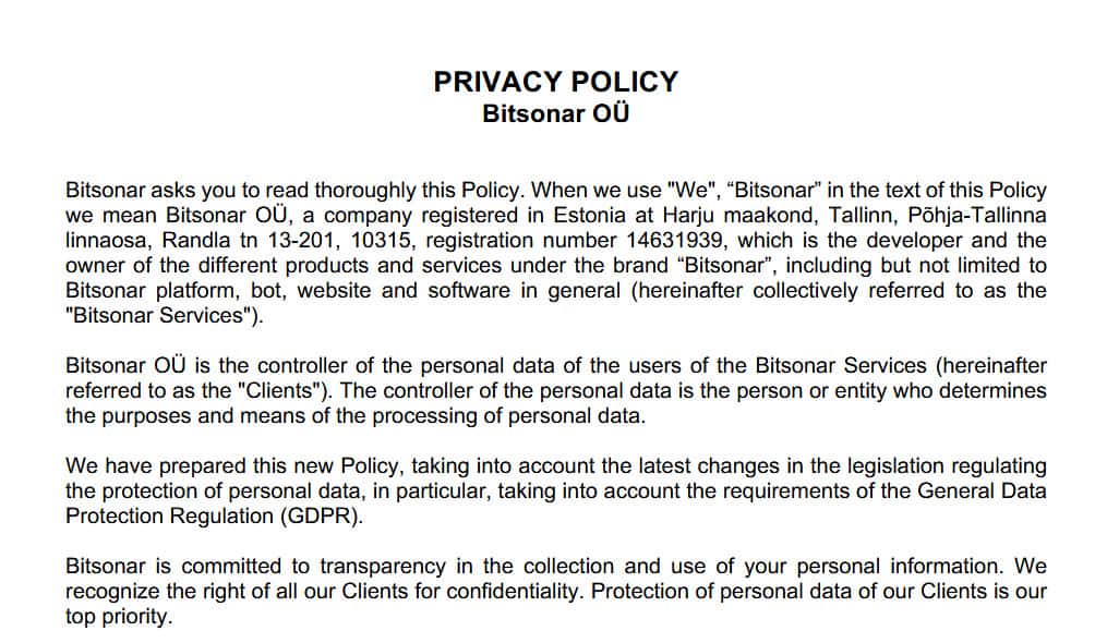 Политика конфиденциальности жуликов BitSonar не может быть для вас никакой гарантией того, что ваши данные не окажутся где-то в другом месте, после того как вся эта шаражка накроется медным тазом. Это повседневная практика, увы, поэтому относитесь к вашим персональным данным очень бережно.