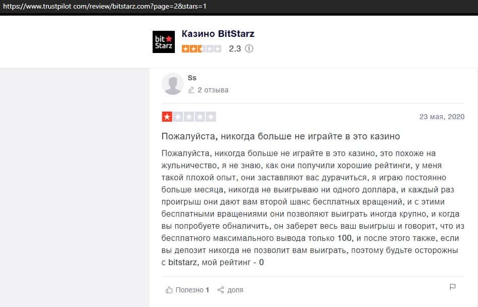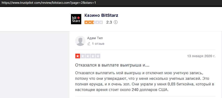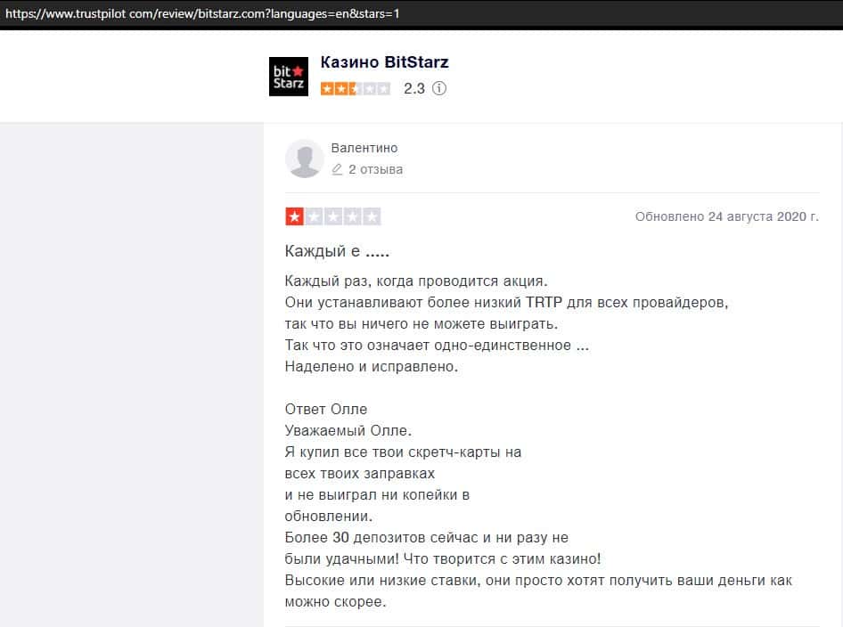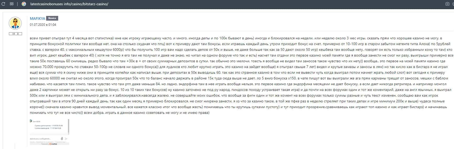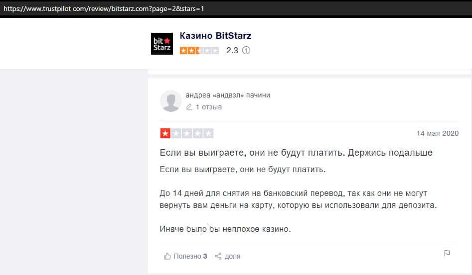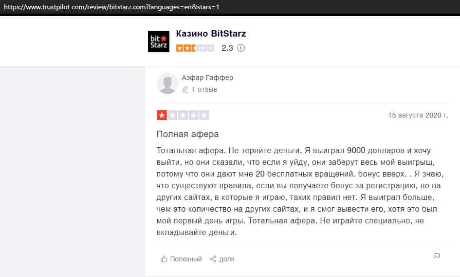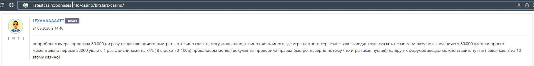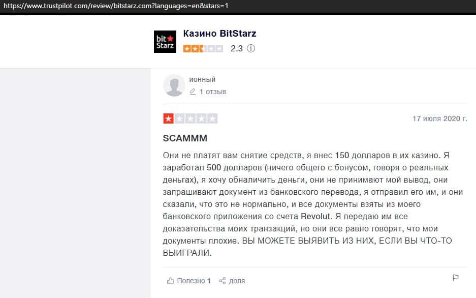 Пользователь сети указал, что контора BitStarz не выплачивает выигрыши ни под каким предлогом. При чем такая ситуация уже случилась у многих успешных игроков.