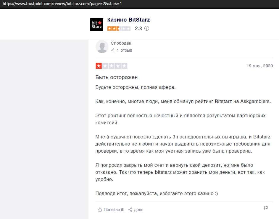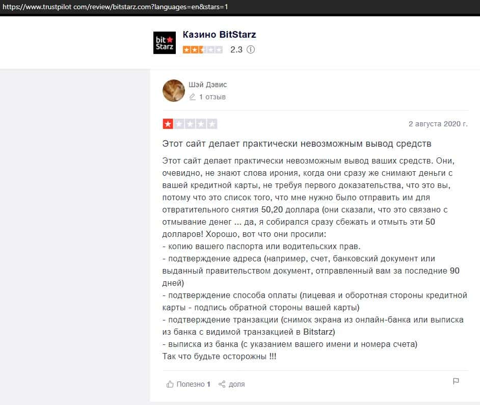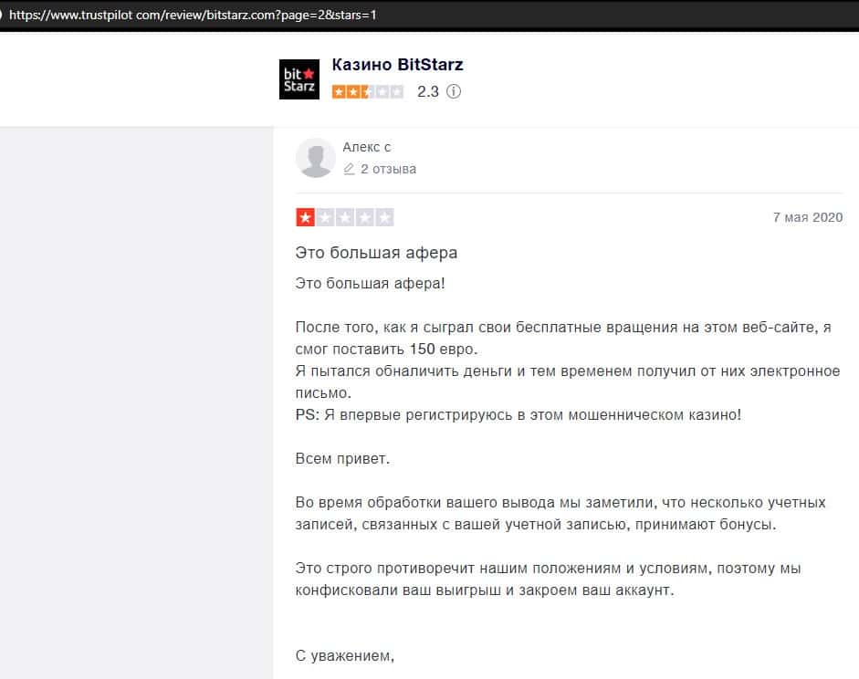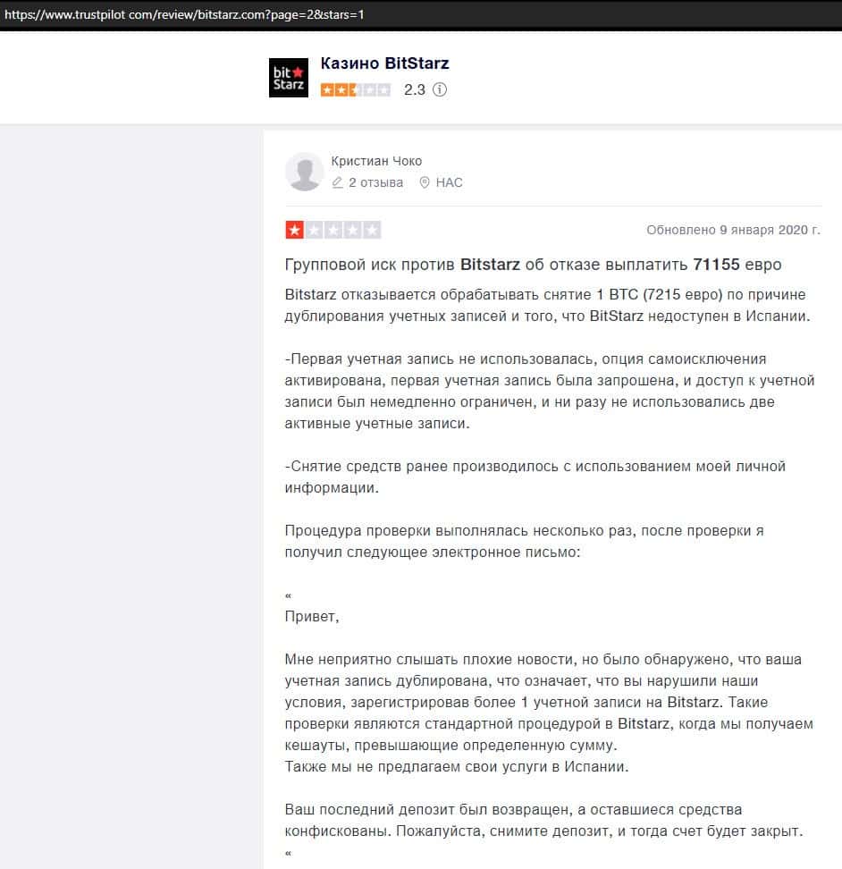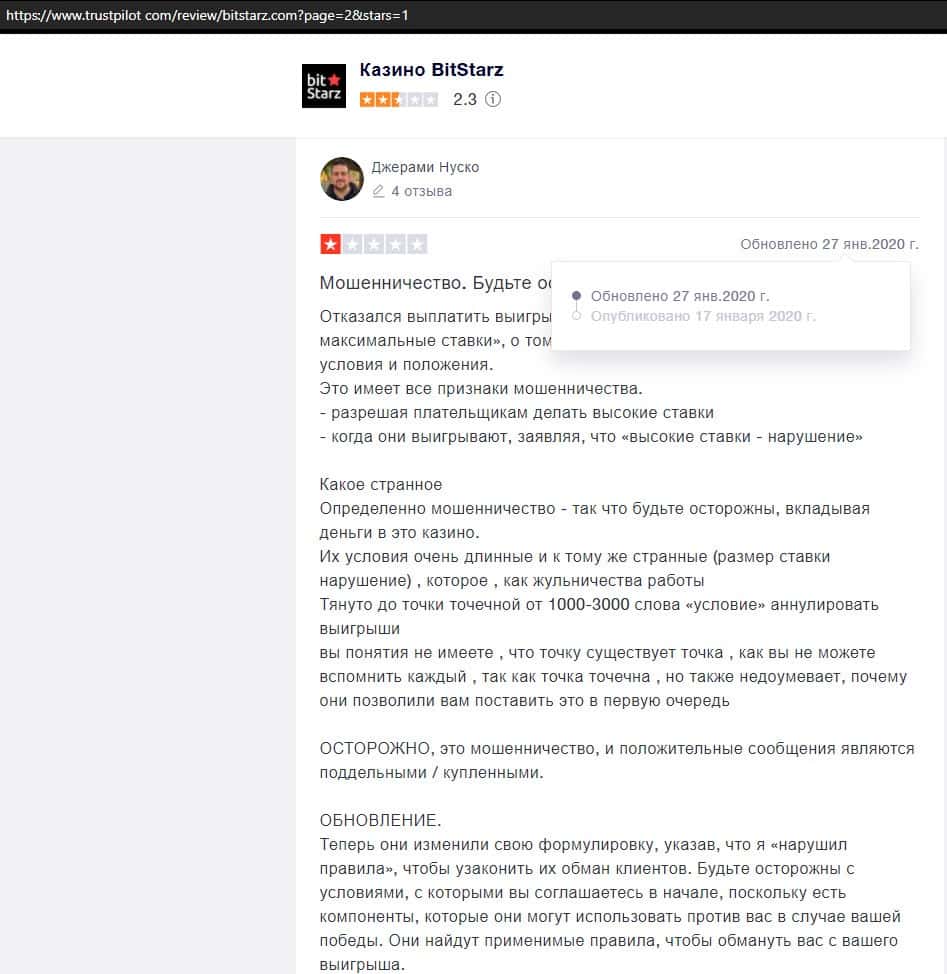 Пользователь сети указал, что контора BitStarz не выплачивает выигрыши ни под каким предлогом. При чем такая ситуация уже случилась у многих успешных игроков.