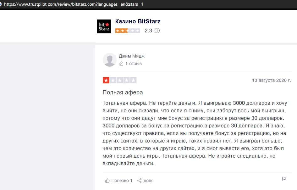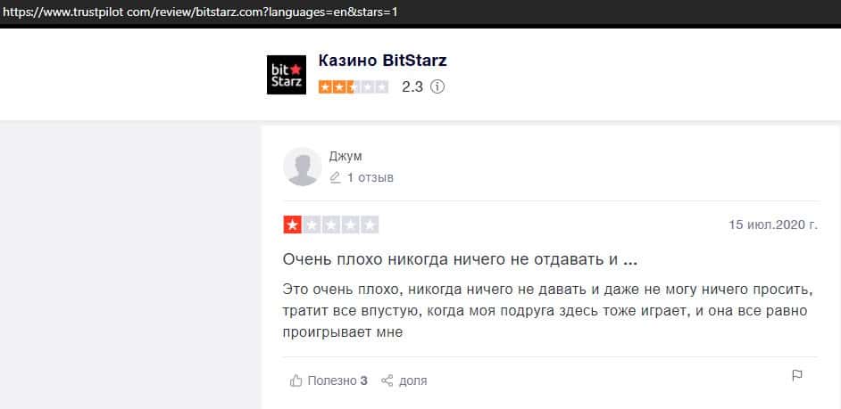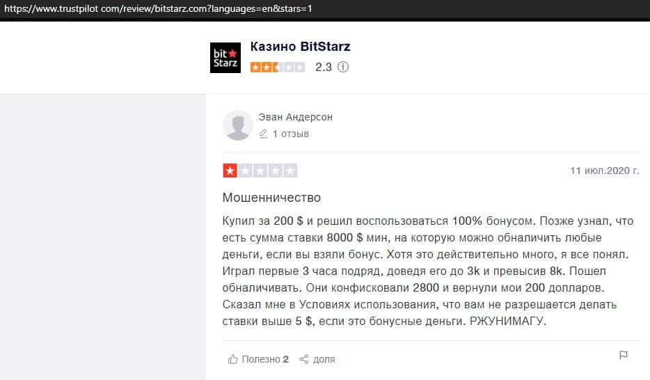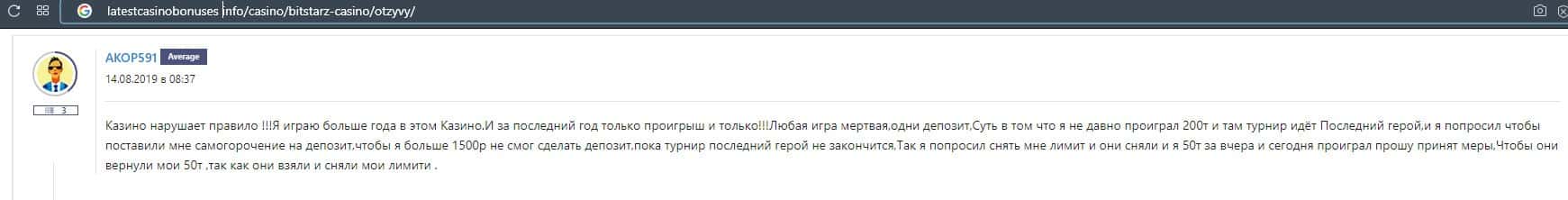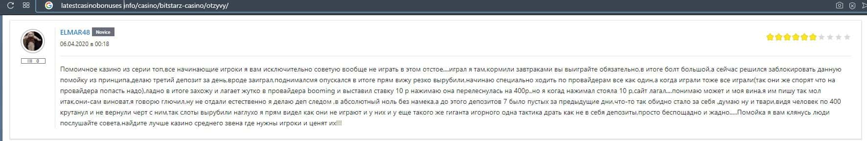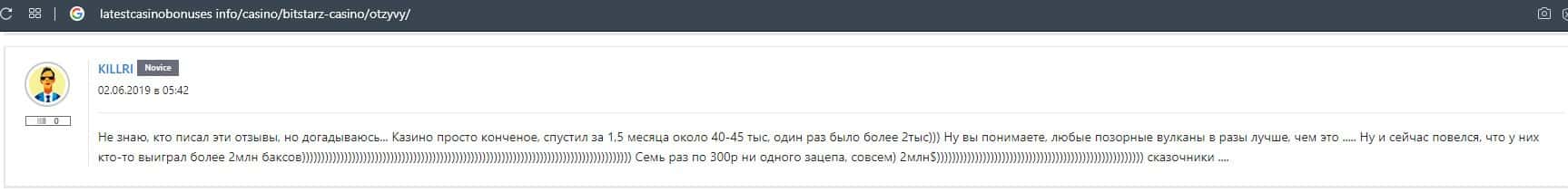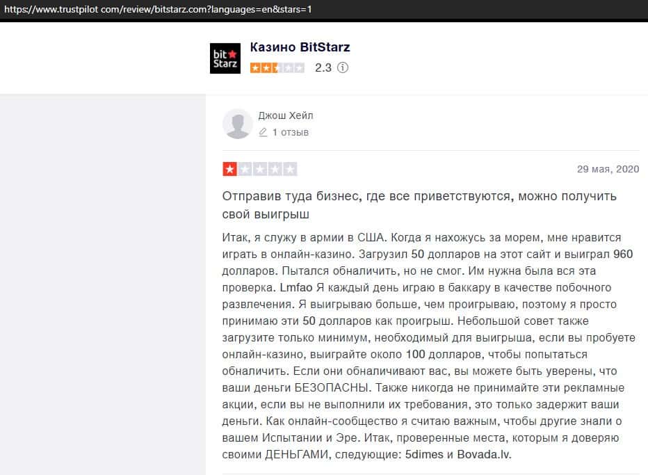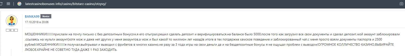 В данном отзыве подтверждается, что если даже вы выиграете деньги в этом недоказино Бит Старз, то вряд ли вам это дадут вывести. Так человек лишился 3000 долларов.