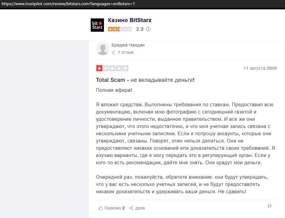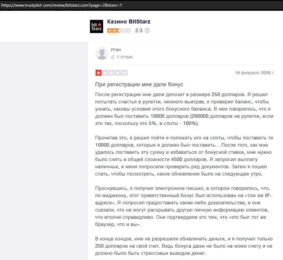 - Ситуации с невыводом средств со счета в казино Бит Старз