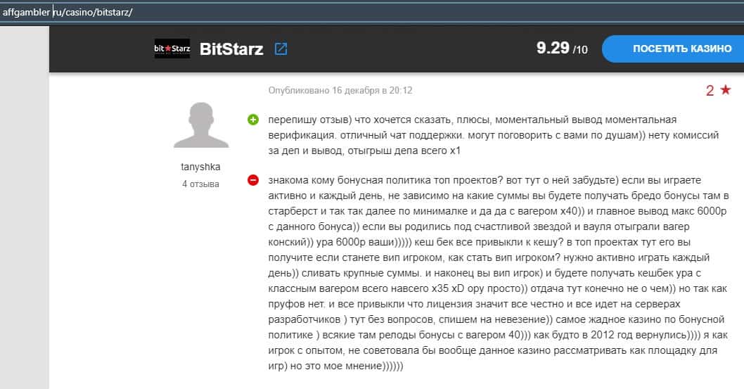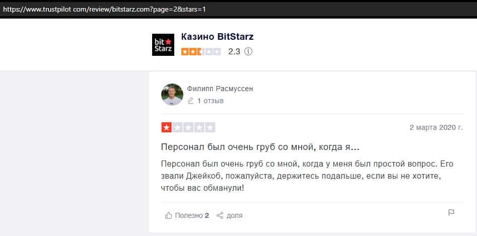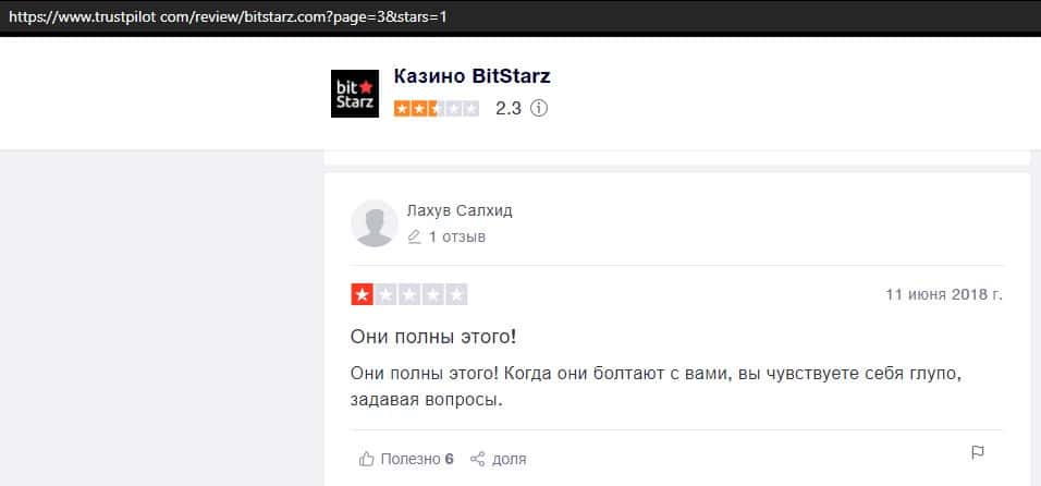 Человек рассказал в своем отзыве, что в конторе BitStarz работает очень грубый и некомпетентный персонал. И такое отношение началось после первого же перевода.
