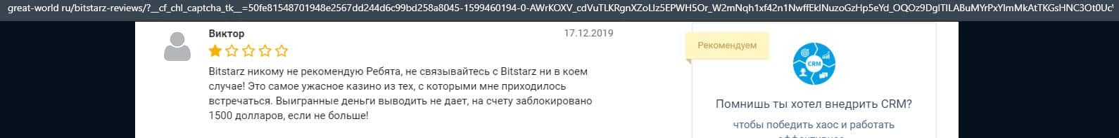 В данном отзыве клиент рассказал, что жулики из BitStarz заблокировали на его счете порядка 1500 долларов США и теперь он не знает, как вернуть свои вложения.