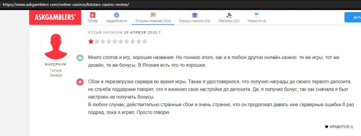 В следующем отзыве отмечено, что происходят частые сбои и перезагрузки во время игры на слотах в мошеннической конторе Бит Старз. Поэтому можно быстро потерять деньги.