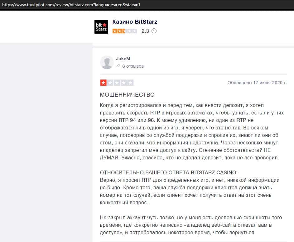 Ситуации с невыводом средств со счета в казино Бит Старз