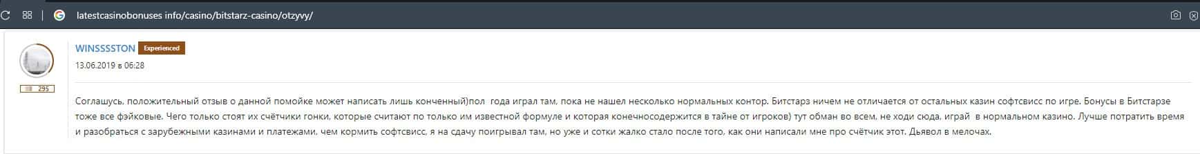 Далее представлена информация от человека, который утверждает, что контора Бит Старз предлагает играть на уже поломанных слотах, которые могут только слить счет.