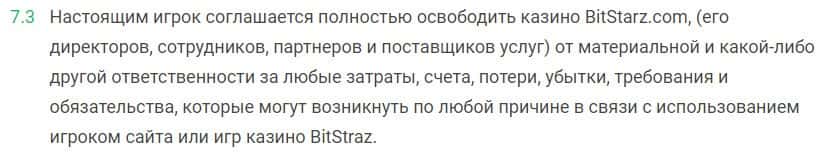 Контора BitStarz также вымогает у клиента заранее, чтобы тот в свою очередь освободил казино от материальной и какой-либо другой ответственности за любые его убытки.