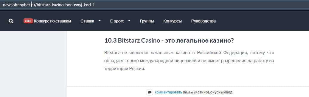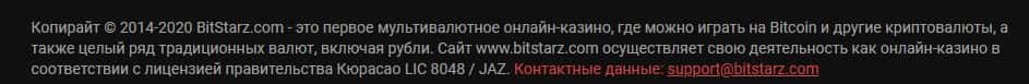 Исходя из данных о регуляции конторы Бит Старз на других источниках, данное казино не является легальным казино в Российской Федерации, так как нет на это разрешения.