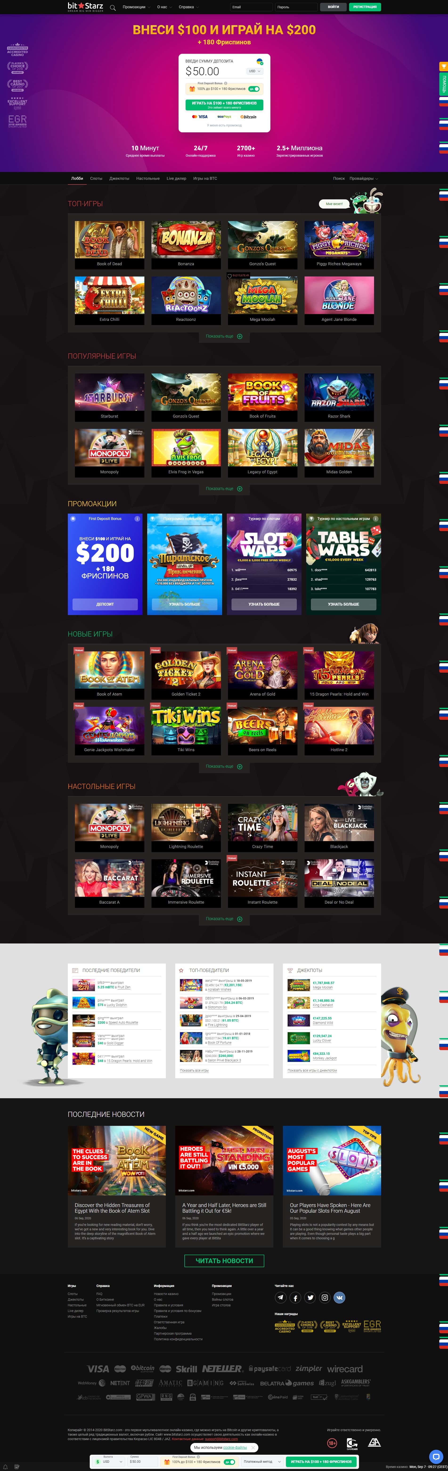 Ниже представлена главная страница мошеннической конторы BitStarz, с помощью которой они собирают лохов, дабы содрать с них как можно больше денег.