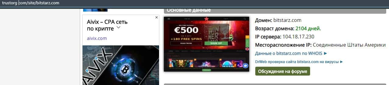 На специальном сайте мы решили проверить, сколько же реально дней домену лохотрона BitStarz. Как оказалось ему больше 2000 дней и скорее всего контора его купила.