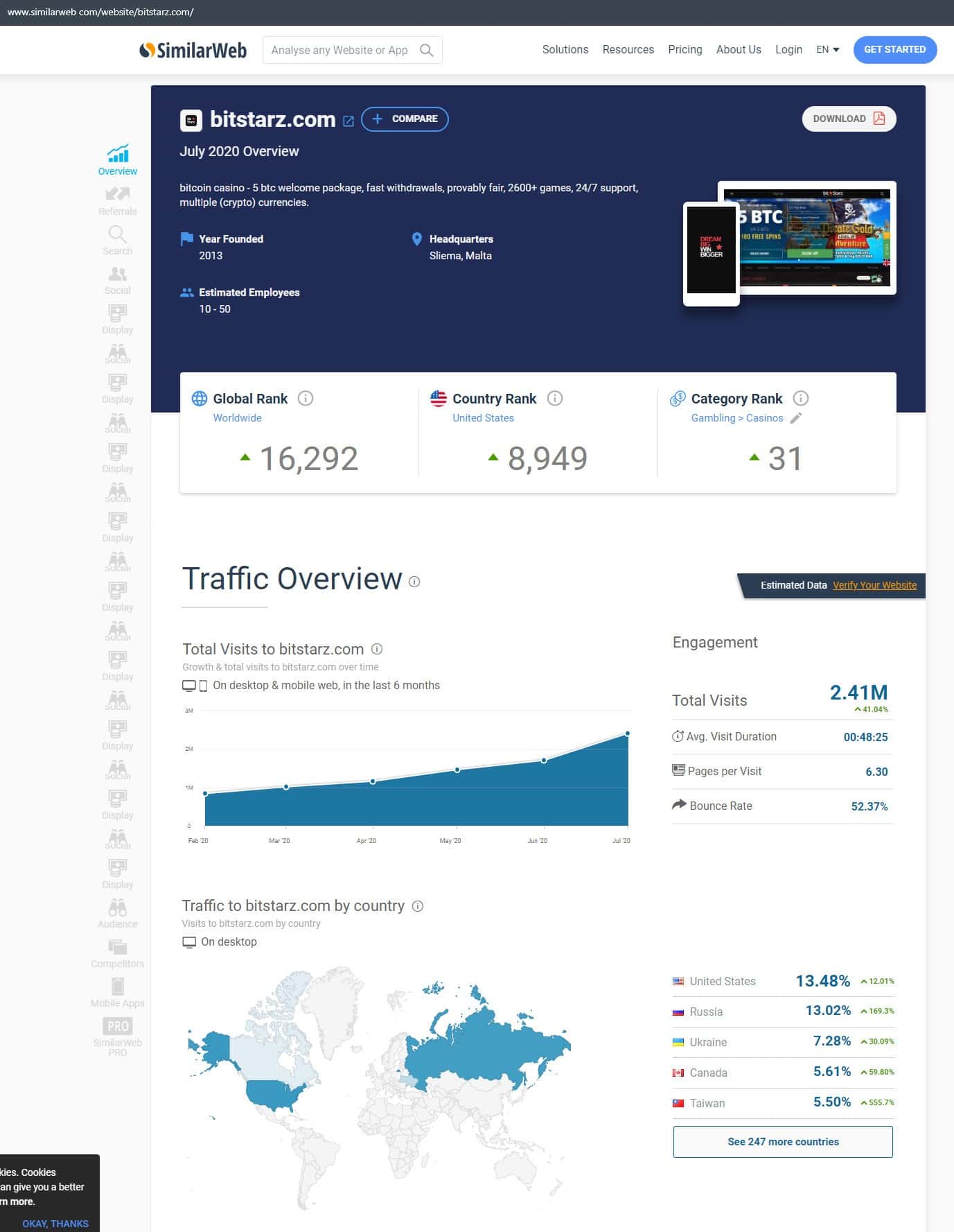 Исходя из данных о трафике ресурса конторы BitStarz, мы обнаружили активность на территории России и Украины, что показывает заинтересованность русскоязычного населения.