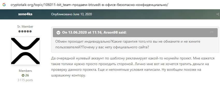 - Отзывы о мошеннической организации Bit Team, ныне присутствующие в сети
